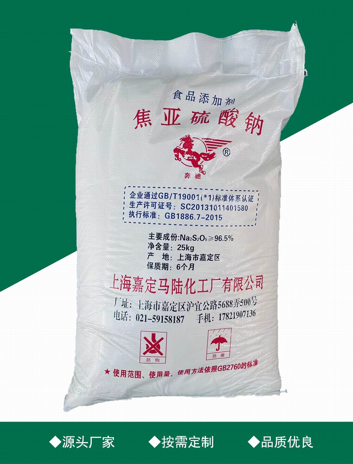 上海嘉定馬陸化工廠有限公司主營生產(chǎn),焦亞硫酸鈉、亞硫酸氫鈉等產(chǎn)品生產(chǎn),幾十年的專注焦亞硫酸鈉研發(fā)生產(chǎn),公司擁有完整、科學的質量管理體系,為確保公司產(chǎn)品能夠長期立足于市場,增強客戶的粘性,可滿足客戶的非標定制需求,可提供產(chǎn)品各個用途的解決方案,公司重信譽、守合同、保質量、快速發(fā)貨以,我們擁有專業(yè)的售前售中、售后團隊共同協(xié)作,確保用戶采購中的每個環(huán)節(jié)都能有滿意的體驗度。